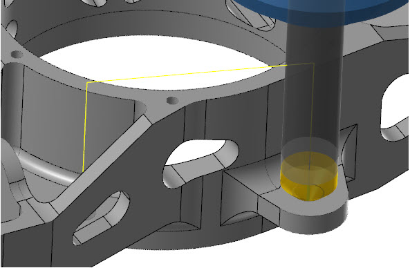 Kao i druge operacije bušenja, pomoću parametra „Tool Axis Control“ možete odabrati 3-osno, 4-osno ili 5-osno skošenje na rupama.