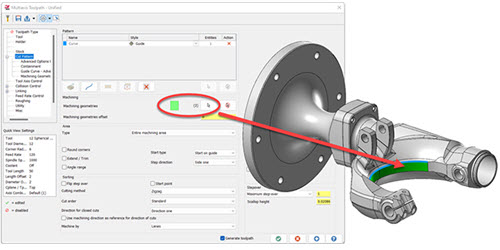 Korisnici ne moraju unijeti korak odabira određenog područja putanje alata da bi razumjeli s kojim se odabirima putanja alata koristi za izračunavanje. Svi odabiri označeni su bojom, vrstom odabira i prikazani su svi odjednom na grafičkom prozoru dok korisnik uređuje putanju (toolpath) alata, smanjujući vrijeme ulaska i izlaska iz odabira kako bi se potvrdio ispravan odabir.
