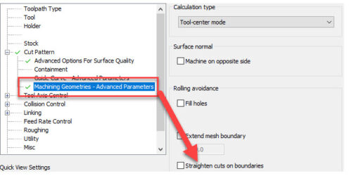 Omogućavanje poboljšanja “Straighten Cuts on Boundary” omogućit će “Unified Guide” odstupanje kada je to potrebno, od stalnog koraka kako bi se sačuvao oblik uzorka u odnosu na početni unos krivulje. Ovi rezultati bolje oponašaju ono što bi korisnik mogao očekivati od uzorka paralelnog rezanja.