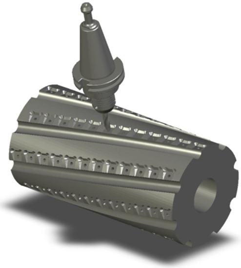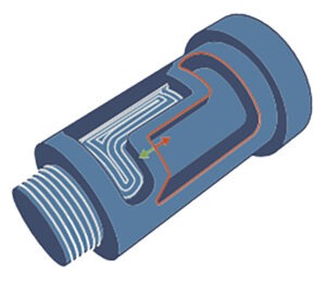 Opcija Tilt during helix za putanje alata za višeosno glodanje džepova orijentira vektor alata tako da je okomit na rez u svakoj točki spiralnog pomicanja. Ovo kretanje smanjuje preopterećenje alata kod grube obrade. Nagib tijekom spirale povećava vijek trajanja alata održavanjem konzistentnog opterećenja strugotine na alatu tijekom ulaska.